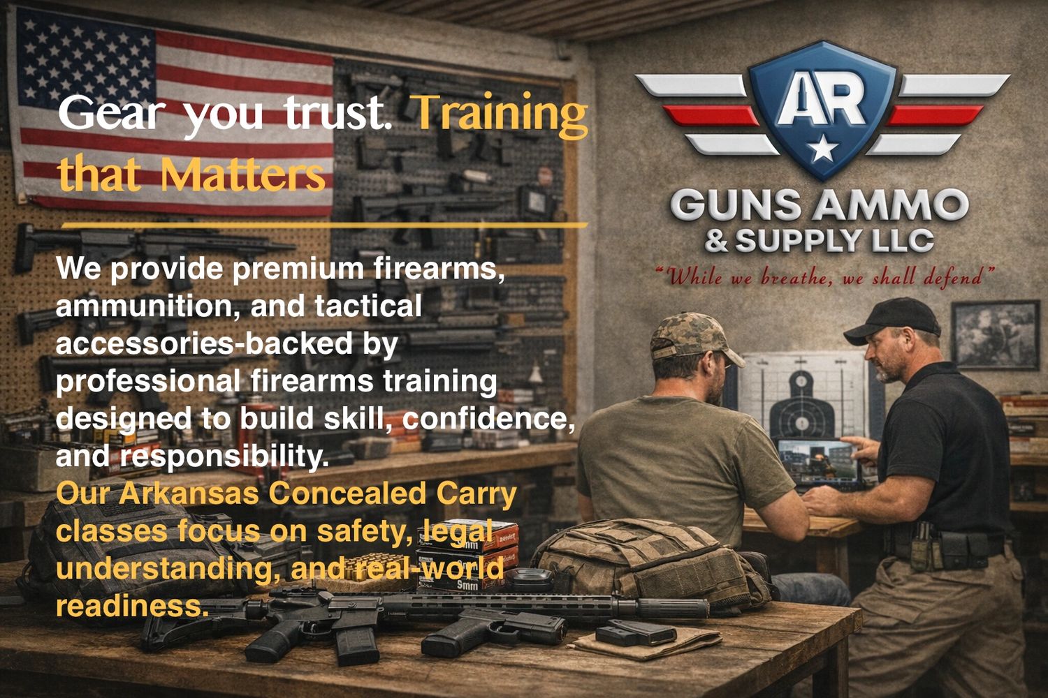 AR Guns Ammo & Supply, LLC proudly partners with S.A.F.E. Training to promote safe, responsible firearm ownership through trusted Arkansas Concealed Carry and firearms education. We believe proper training is just as important as quality equipment.